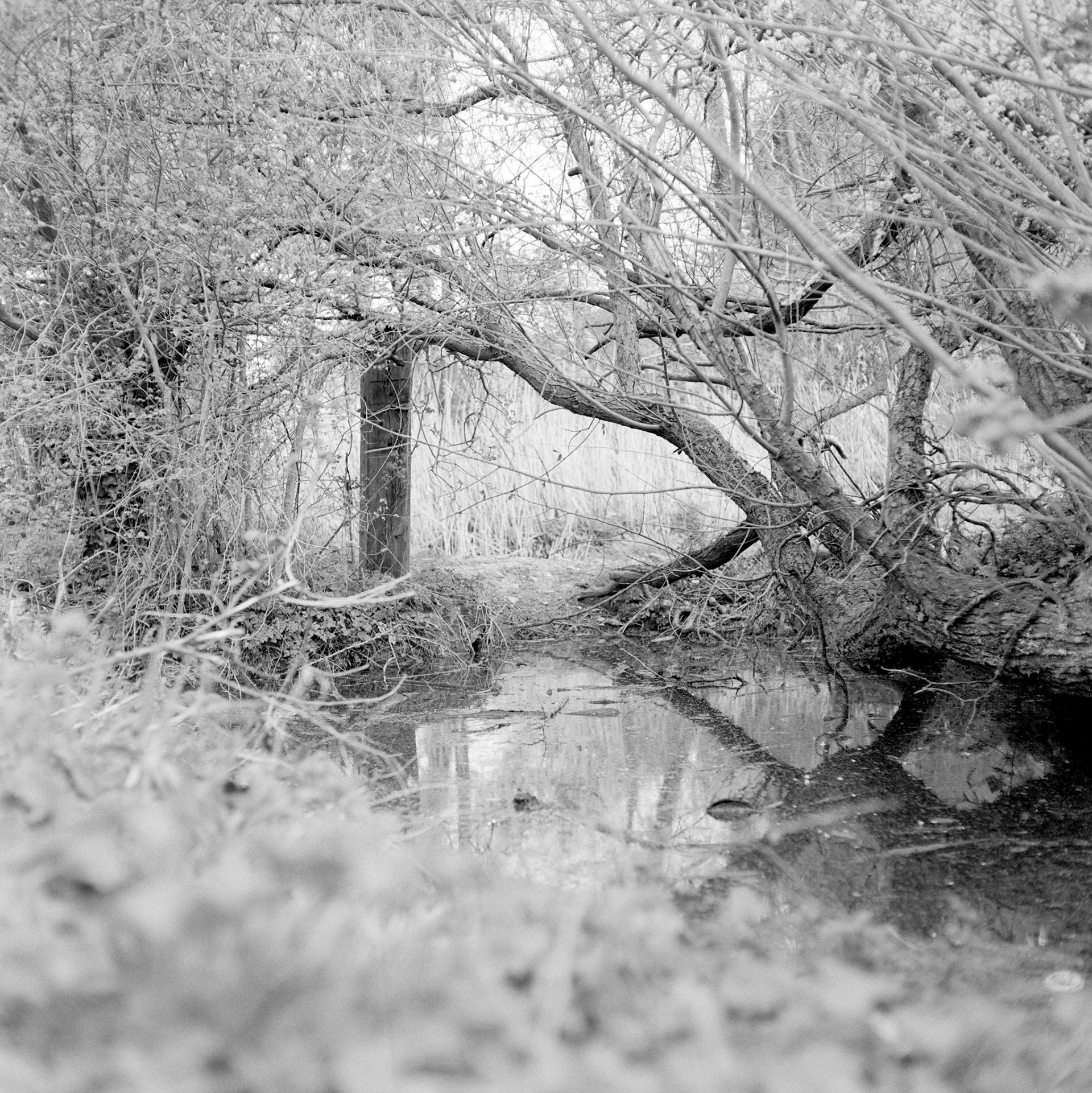 A rhyne, rhine/rhyne, or reen is a drainage ditch, or canal, used to turn areas of wetland at around sea level into useful pasture.